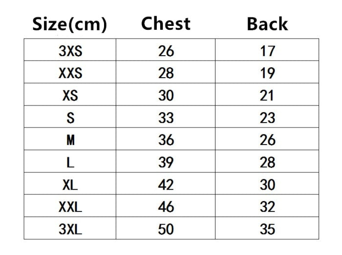 Size Options: 3XS / 2XS / XS / S / M / L / XL / 2XL / 3XL